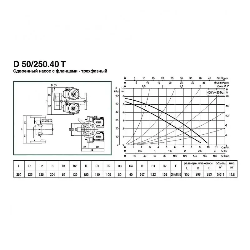 • В сдвоенном исполнении встроенный обратный клапан и фланец-заглушка для демонтажа одного из электродвигателей