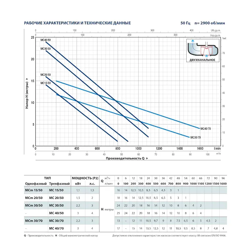 Электронасосы МС оснащены одноканальным рабочим колесом, заключенным в просторную кольцевую камеру, защищенную корпусом насоса и основанием, которое имеет обработанную поверхность, всасывающий патрубок, установленный в основании насоса, непосредственно соприкасается с накачиваемой жидкостью.