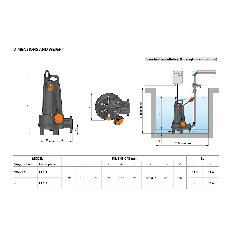 Насос фекальный Pedrollo TRITUS TR 1.5 предназначен для перекачивания сильно загрязненных вод. Конструкция рабочего колеса позволяет использовать насос для откачки бытовых и промышленных стоков из канализации, жидкостей из водоемов и подвалов.