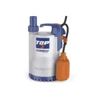 ОСОБЕННОСТИ МОДЕЛИ: подача насоса до 400 л/мин. (24 м3/ч) напор насоса до 14.5 м температура жидкости до +40°С (+90°С до 3 мин) максимальная глубина применения до 5 м максимальное прохождение твердых частиц во взвешенном состоянии до d=10 мм максимальный уровень опорожнения колодца до 14 мм Характеристиками новых электронасосов ТОР являются: новаторский дизайн, высокая технология и конструктивные решения, которые обеспечивают простоту в эксплуатации, безопасность и большую надежность функционирования. ПРИНЦИП РАБОТЫ НАСОСОВ СЕРИИ TOP: Серия ТОР включает в себя погружные дренажные насосы, центробежного типа с открытым рабочим колесом, разработанные для функционирования в автоматическом режиме. Рабочее колесо, качающееся на ведущем валу, состоит из заднего диска и из лопаток. Через всасывающую решетку жидкость входит во вращающийся лопаточный канал; здесь жидкость приобретает радиальное движение по направлению от центра к периферии, в процессе которого приобретает энергию как в виде давления, так и в виде увеличения скорости потока. На выходе из рабочего колеса жидкость устремляется в спираль, после преобразования части кинетической энергии в энергию напора, покидает насос через вертикально установленный патрубок подачи, предусмотренный в нагнетательном корпусе. Достаточное охлаждение двигателя обеспечивается перекачиваемой жидкостью. ОБЛАСТЬ ПРИМЕНЕНИЯ И УСТАНОВКИ НАСОСОВ TOP Насосы Pedrollo серии ТОР рекомендуются для подъема чистой воды с размером абразивных частиц не более 10 мм. Использованные конструктивные решения обеспечивают простоту в эксплуатации и безопасность даже при непрерывном функционировании (напр. в фонтанах), благодаря полному охлаждению двигателя, снабженному хорошим запасом мощности и двойному механическому уплотнению. Облегченный демонтаж двигателя и насоса делает простым и удобным техническое обслуживание и ремонт. Эти насосы особенно пригодны для осушения затопленных помещений небольшого объема, в чрезвычайных ситуациях, таких как, (помещения, подвалы, боксы), для опорожнения бассейнов, ванн и аквариумов, переработки бытовых стоков, (стиральные и посудомоечные машины), для подачи воды в садовые фонтаны, для орошения небольших садов и огородов из накопителей, для осушения небольших канализационных отстойников.