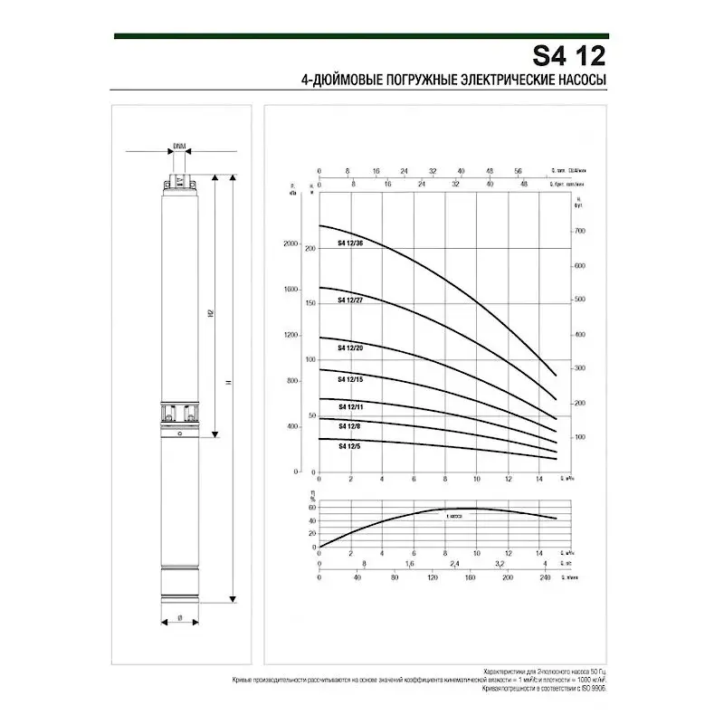 Отличительной особенностью насосов серии S4 (в отличие от насосов серии CS4) является применение нержавеющей стали в качестве материала для изготовления опоры электродвигателя, напорного патрубка и обратного клапана. Насос S4 поставляется со свободным концом кабеля. Кабель нужной длины присоединяется дополнительно с помощью заливной или термоусадочной муфты. Широкий диапазон выпускаемых фирмой DAB скважинных насосов S4 позволяет подобрать подходящий насос для абсолютно любого современного частного дома. Все насосы имеют встроенный обратный клапан и всасывающий фильтр, что исключает возможность попадания внутрь крупных частиц. Тепловая защита, встроенная в блок Control Box 4 надежно защитит насос от перегрузок. Конструктивные особенности электродвигателя: 40L- это двухполюсный асинхронный двигатель, детали которого, контактируют с водой, изготавливаются из нержавеющей стали AISI 304L. Охлаждение и смазка шариковых подшипников обеспечиваются специальной жидкостью, одобренной для контакта с пищевыми продуктами. Статор с заменяемой обмоткой установлен в корпусе из нержавеющей стали AISI 304L, закрепленном стальными штифтами на верхней опоре двигателя. Он оснащен углеродно-керамическим механическим уплотнением. Съемный кабельный разъем, кабель, сертифицированный в соответствии с требованиями ACS, WRAS и KTW, двигатель, пригодный для использования с частотно-регупируемым приводом (30-50 Гц). В однофазной версии с частотой 50 Гц конденсатор и защита от перегрузки, сбрасываемые вручную, находятся в электрической панели управления (ее можно заказать отдельно). В трехфазной версии защита должна быть обеспечена пользователем