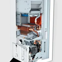 - Битермический теплообменник котла, изготовленный из высококачественной меди, способен обеспечить несколько точек водоразбора одновременно.
