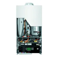 Горелка предварительного смешивания работает как на природном, так и на сжиженном газе. Широкий диапазон модуляции позволяет оптимально подстроиться к текущей мощности. Благодаря удобному расположению пластинчатого теплообменника ГВС для обслуживания котла не придется снимать отдельные блоки, достаточно будет открутить всего один винт.