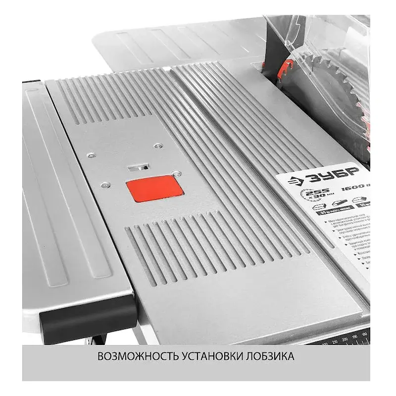 Система защиты от перегрузок обеспечивает исправную работу распиловочного станка ЗУБР ЗПДС-255-1600С без снижения эффективности даже при распилке промерзшего или мокрого дерева. При нештатной ситуации срабатывает блокировка, которая позволяет избежать поломок. Для повторного запуска необходимо нажать на кнопку восстановления предохранителя.