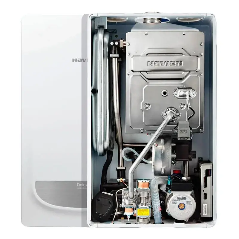 Котел газовый Navien Deluxe S-13K обладает мощностью 13 кВт и подходит для отопления и нагрева воды в ГВС. Применяется в помещениях площадью до 130 м2. Температура настраивается с помощью пульта управления, который входит в комплект поставки.