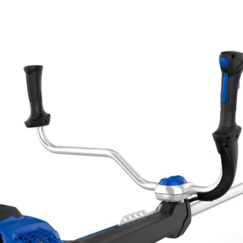 Надежный кованный вал с усиленной опорой и шестерни редуктора выполнены из высокопрочной легированной стали, что обеспечивает долговечность использования. Изделие оснащено антивибрационной демпфирующей муфтой. Эргономичная велосипедная рукоять регулируется, покрыта мягким противоскользящим покрытием. Для удобства и безопасности все элементы управления расположены на рукояти, также имеется специальный кронштейн для изменения наклона триммера до максимально удобной позиции. При транспортировке рукоять триммера поворачивается параллельно относительно штанги. Триммер оснащен специальным плечевым ремнем с поясной поддержкой. Качественная триммерная головка выполнена из прочного пластика. Кусторез оснащен системой быстрой и удобной намотки триммерной лески с диаметром 3 мм и износостойким редуктором с низким уровнем шума. Обороты нижнего редуктора достигают 10 000 об/мин. Помимо триммерной головки в комплекте идет триммерный диск на 24 зуба с возможностью заточки, а также специальный алюминиевый кожух.