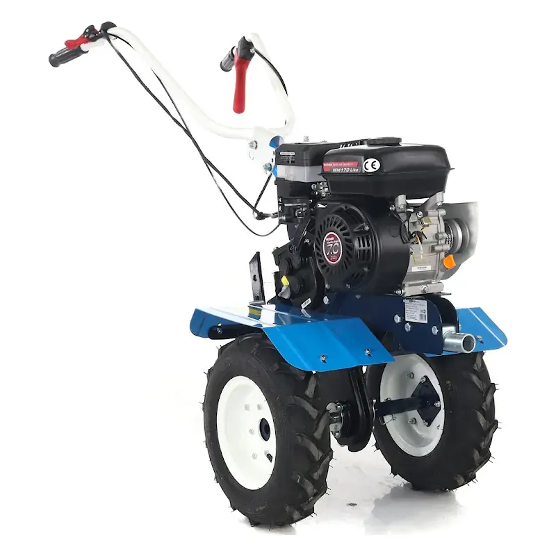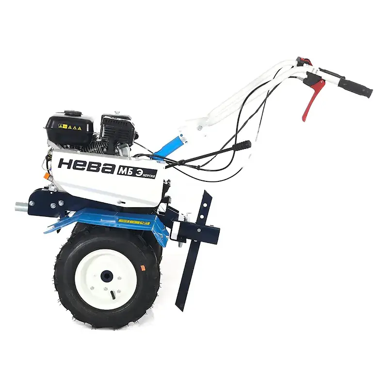 Бензиновый мотоблок Нева МБ Энергия-WM170Lite оборудован двигателем мощностью 7 л.с., а потому подходит для работы с целиной. Поставляется в комплекте с транспортировочными колесами и набором фрез.