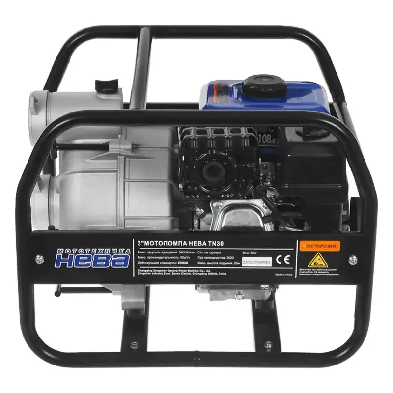 Бензиновая мотопомпа НЕВА TN30 с производительностью 916 л/мин или 55 м3/ч предназначена для бытовых нужд. Диаметр всасывающего и нагнетательного патрубков составляет 80 мм или 3 дюйма. Прибор забирает воду с глубины до 6 м, поэтому позволяет обслуживать колодцы и коллекторы. Мотонасос с напором 25 м обеспечивает подачу воды на расстояние до 250 м по горизонтали.