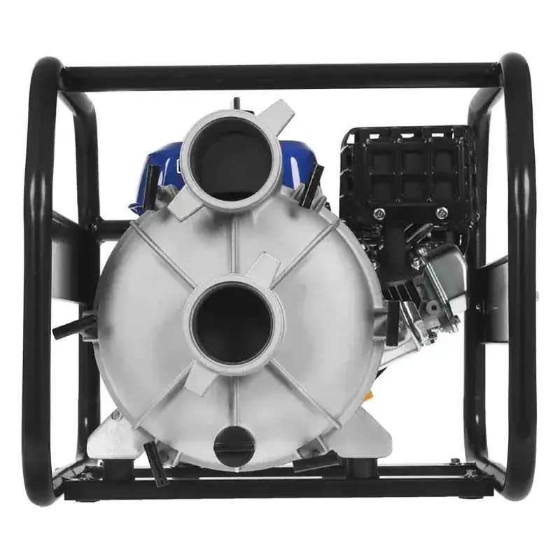 Мотопомпа имеет прочный металлический корпус и усиленную стальную раму для удобства транспортировки и защиты от возможных ударов и механических повреждений. Большая площадь основания позволяет устанавливать агрегат даже на рыхлой поверхности.