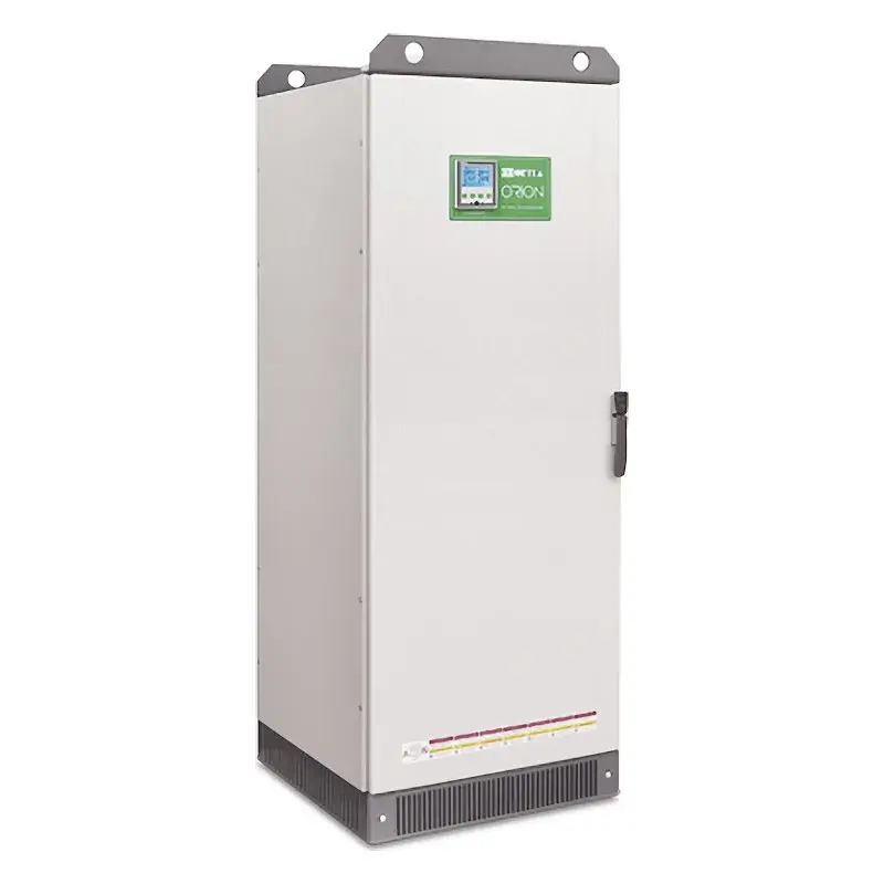 Стабилизатор напряжения ORTEA Orion 105 – модель профессионального класса с максимальной мощностью нагрузки 105 кВа. С помощью цифрового дисплея вы можете отслеживать до 150 параметров электросети, а благодаря морозостойким компонентам использовать технику при температуре до - 25 °C.