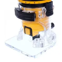 Фрезер DEWALT DWE6005 мощностью 340 Вт проходит для фаски и создания кромок. Поставляется в комплекте с копиром, упором и переходником для пылесоса.