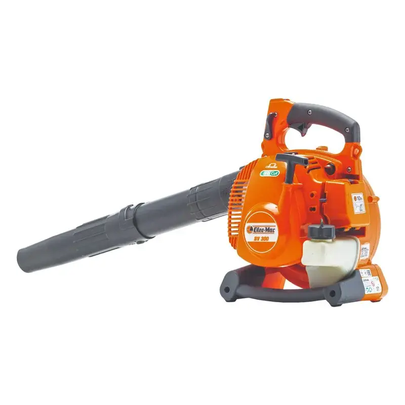 Ручной воздуходув Oleo-Mac BV 300 оборудован праймером для подкачки масла, который облегчает зажигание холодного мотора. Заводится прибор с помощью ручного стартера с облегченной системой запуска. Вы можете регулировать интенсивность обдува, нажимая на курок газа, и зафиксировать силу воздушного потока с помощью ограничителя числа оборотов.