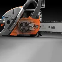 Прочная конструкция цепной бензопилы рассчитана на продолжительное использование: кованый коленвал, стенки цилиндра и поршень с никосиловым покрытием, два кольца у поршня. Ресурс двигателя повышен за счет 3-секционного коленвала и катушки зажигания с электрическим блоком для качественного искрообразования.