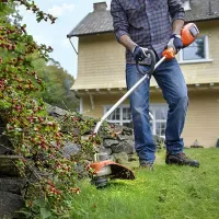 Садовый триммер оснащен шпулей Tap'n'Go. За счет полуавтоматической подачи лески вам не придется прерывать работу на долгое время. Для удлинения концов режущей струны достаточно только коснуться триммерной головкой земли. Бензокоса оборудована петлеобразной рукояткой. Она позволяет выполнять короткие и точные движения и аккуратно выстригать траву вблизи различных препятствий. Например, вокруг клумб и деревьев, рядом с забором, лавочками, качелями и т.д.