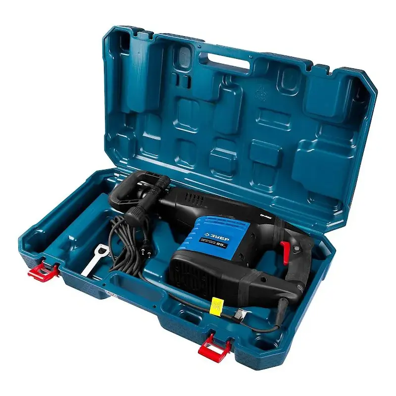 Боковую рукоятку можно повернуть на 360 градусов и зафиксировать под наиболее удобным углом. Глубокая рельефная текстура обрезиненных поверхностей способствует надежному хвату и контролю над инструментом. Благодаря антивибрационной системе вы меньше устанете даже при продолжительной работе. Бетонолом поставляется в кейсе, который можно использовать для аккуратного хранения и переноски. Сетевой шнур длиной 5 м не ограничивает ваши движения на рабочей площадке, для безопасности имеет резиновую изоляцию.