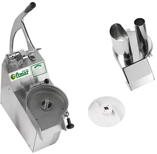 Овощерезка Fimar TV3000 (380V) без ножей предназначена для нарезки фруктов и овощей на кусочки различных форм и размеров, натирания сыра, сухарей, шоколада, фундука, шинкования моркови, сельдерея, картофеля, яблок, репы, свеклы, мягкого сыра моцарелла.