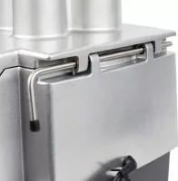 50 дисков (опционально), позволяющих производить все виды нарезки: стружку, волнистую нарезку, соломку, жюльен, брусочки и кубики (от 5х5х5 мм до 25х25х25 мм) с точностью и высоким качеством