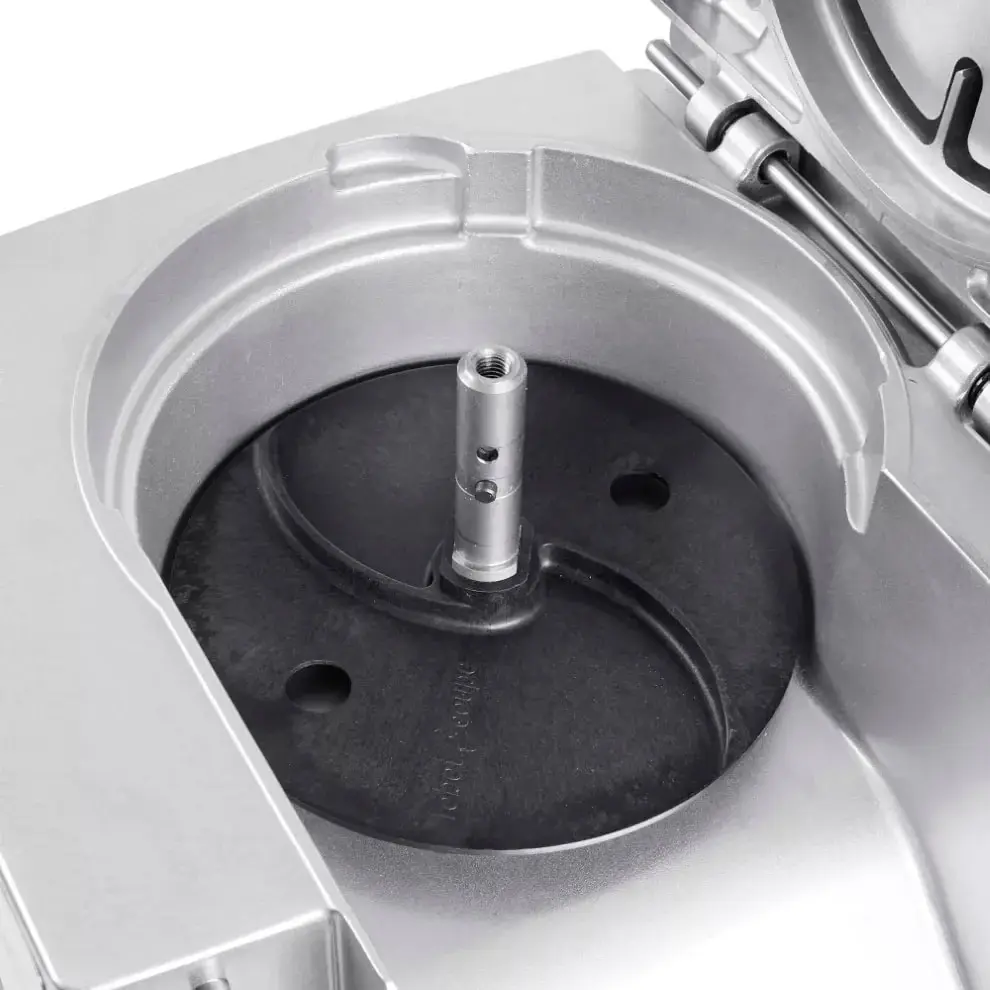 • Автоматической воронкой, сочетающей высокую производительность с качеством нарезки. Для работы с большей загрузкой и скоростью. Подходит для нарезки нежных продуктов, таких как грибы или томаты, а также для терки моркови и нарезания соломкой, кубиками и брусочками фри.