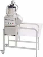 Овощерезка CL55 располагается на передвижном стенде, изготовленном из нержавеющей стали. Он оснащен двумя колёсами с тормозом. На стенде удобно размещаются овощерезка и гастроёмкость GN 1/1 для приёмки нарезаемого продукта.