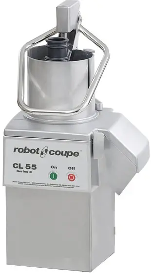 Овощерезка Robot Coupe CL55 рычаг 1Ф используется на предприятиях общественного питания и торговли для нарезки овощей, фруктов, грибов, твердого сыра и колбас и дальнейшего использования их в качестве ингредиентов для приготовления супов, салатов, гарниров и пр. Предназначена для использования в больших ресторанах, столовых, фабриках-кухнях. Модель оборудована воронкой с рычагом (площадь 227 см2) со встроенной трубкой (_ 58 мм) и устанавливается на тележку из нержавеющей стали. Форма рычага обеспечивает удобную и быструю работу. Трубка используется для непрерывной нарезки длинных и нежных фруктов и овощей.