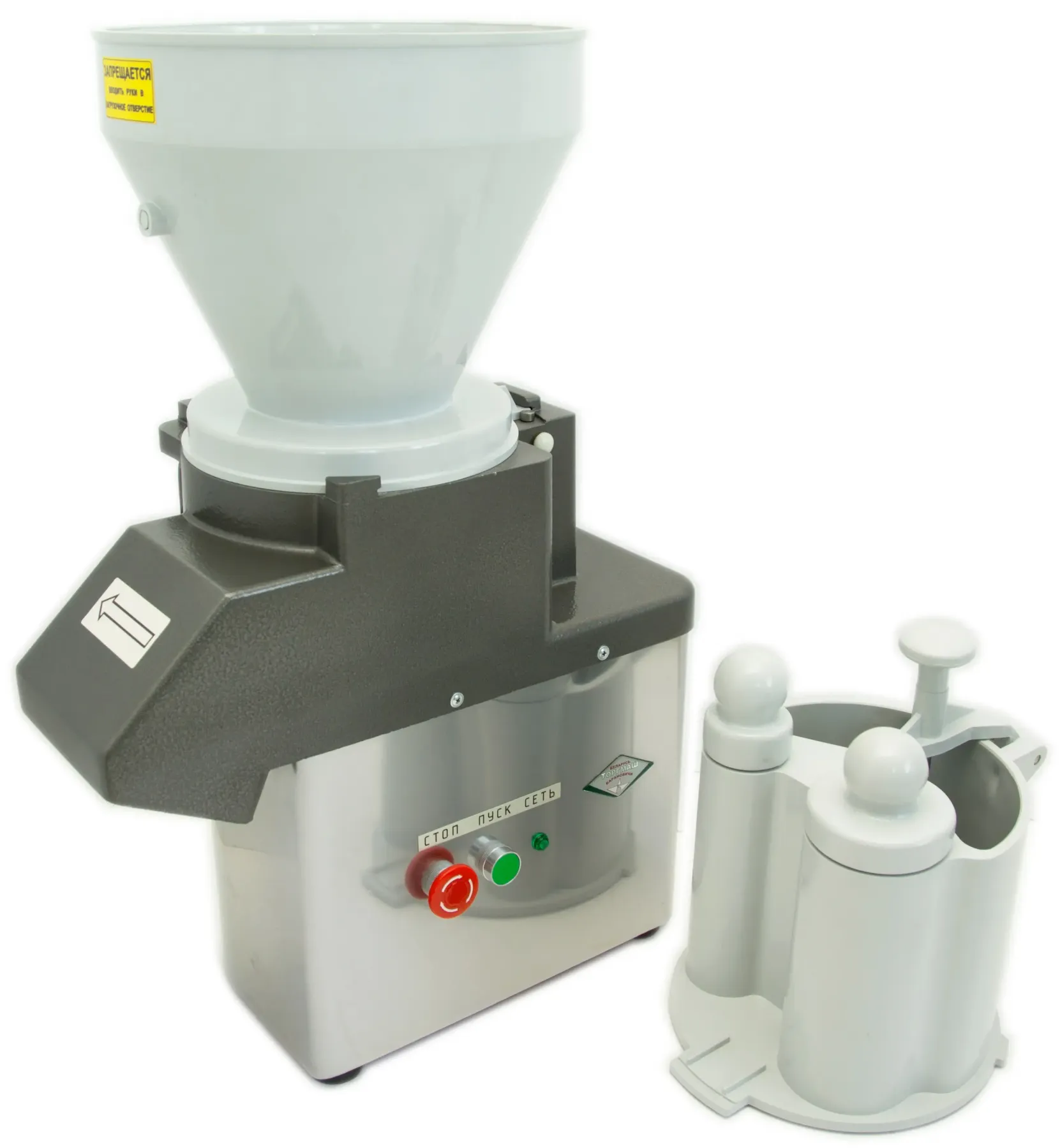 Овощерезка Торгмаш Беларусь МП0-1-02 используется на предприятиях общественного питания и торговли для нарезки сырых и вареных продуктов (картофеля, свеклы, моркови, лука, репы, брюквы, огурцов, томатов и т.д.) на частицы различной геометрической формы, тонкого измельчения картофеля, моркови, а также для шинковки капусты.