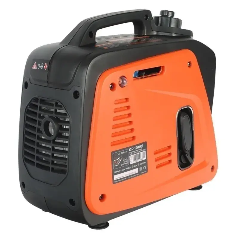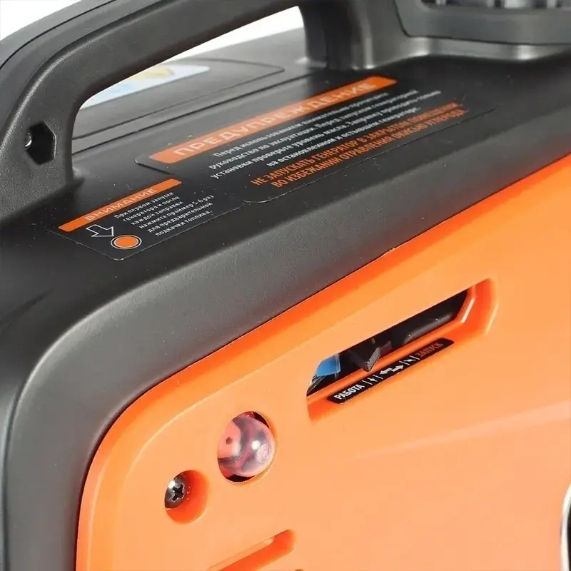 В верхней части находится транспортировочная ручка. За неё можно переносить генератор, как чемодан.