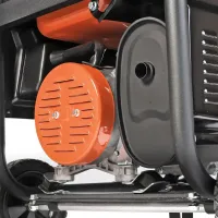 На панели управления бензинового электрогенератора размещено 2 розетки 16 А для подключения нужного вам оборудования, например строительного инструмента. Каждый выход оснащен защитной крышкой, которая предотвращает попадание пыли, грязи и влаги внутрь. Это особенно удобно, если модель будет находиться на улице. Есть дополнительный выход на 12 В, который предназначен для подзарядки автомобильного аккумулятора.