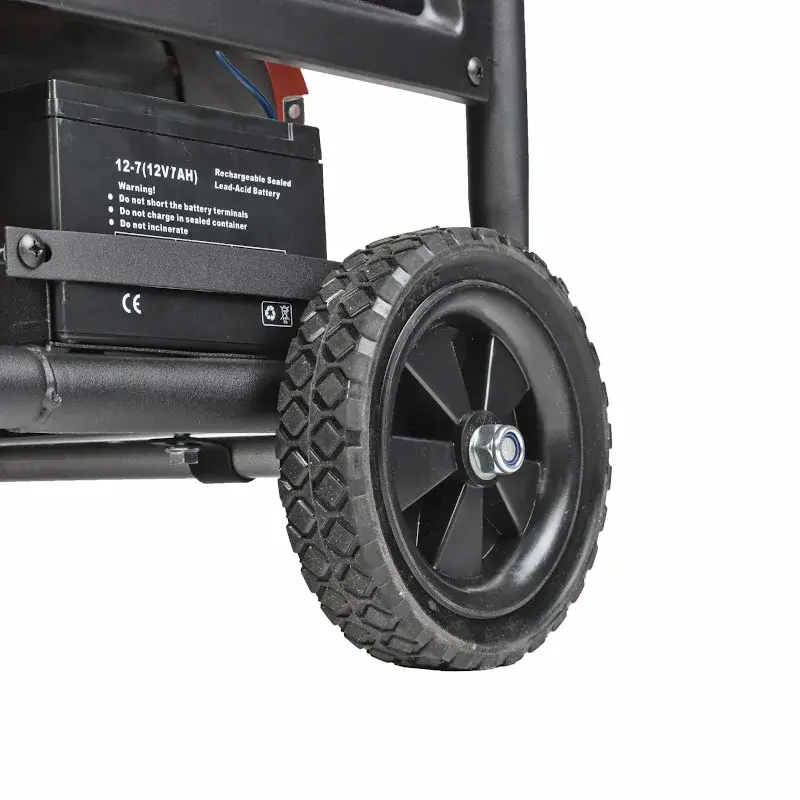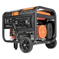Бензиновый генератор Patriot GP 3810LE оборудован 4-тактным двигателем с максимальной мощностью в 3 кВт. Для простого перемещения по строительной площадке предусмотрено 2 транспортировочных колеса, а также складная ручка.