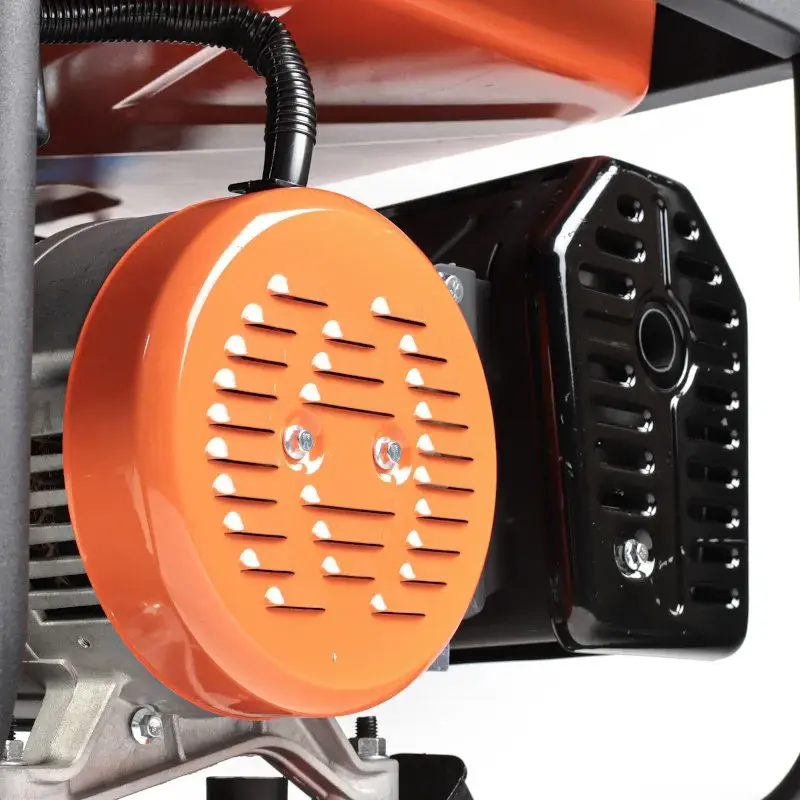 Металлическая рама, которая обнесена по всему корпусу, защищает генератор от механических повреждений. Её боковые части используются в качестве держателей.