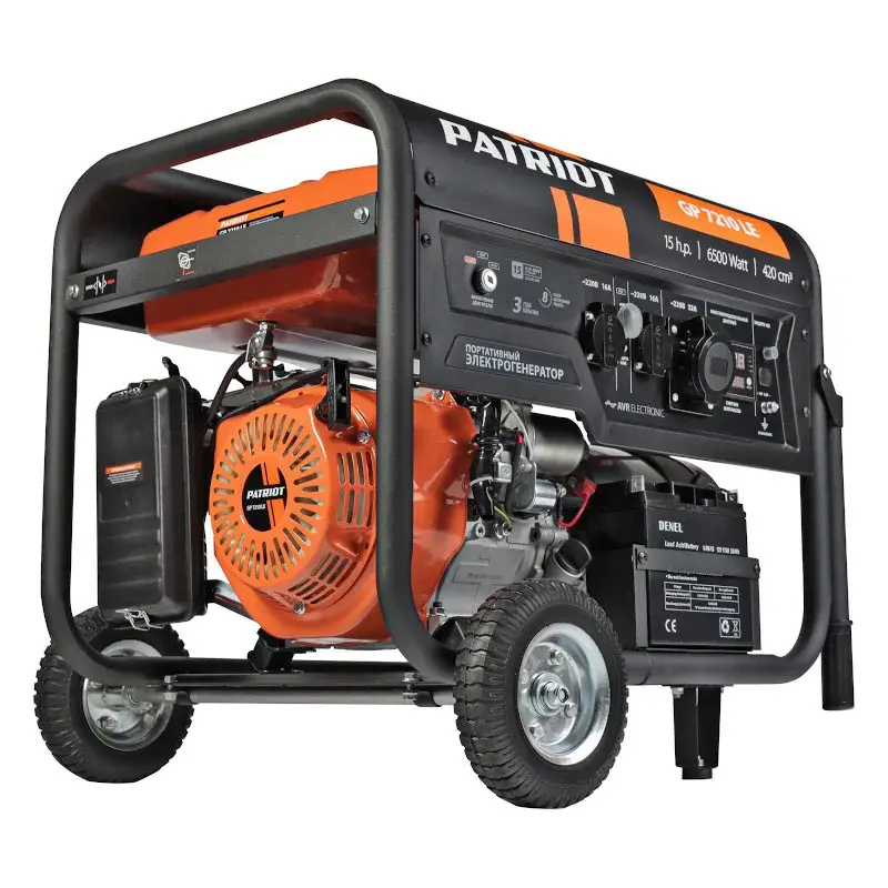 Генератор бензиновый Patriot GP 7210LE применяется в качестве аварийного или автономного источника электроэнергии для питания мощных бытовых электроприборов, электроинструмента, небольших станков, сварочных аппаратов. Оптимальное соотношение мощности двигателя и электрогенератора обеспечивает стабильную работу на номинальной мощности.