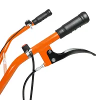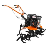 Для работы на тяжелых глинистых грунтах и целине можно использовать пониженную передачу – так потребуется меньше усилий для удержания машины, агрегат не будет резко дергаться и подпрыгивать. Большой бензобак объемом 3,6 л позволит реже останавливаться на дозаправку. Управлять мотоблоком не сложно – все рычаги выведены на рукоятки. При необходимости устройство можно доукомплектовать пневмоколесами и любым навесным оборудованием – от окучника до картофелекопалки.