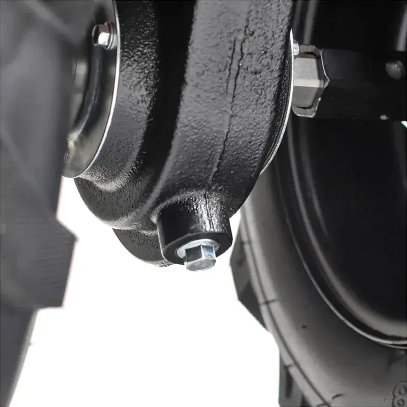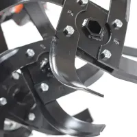 Широкий диапазон передач бензинового мотоблока позволяет выбрать оптимальную скорость движения в зависимости от структуры и влажности почвы. Задний ход облегчает маневрирование и вытаскивание застрявшей в земле машины. Глубина вспашки регулируется установкой высоты сошника. Большие пневматические колеса с глубоким протектором обеспечивают высокую проходимость и хорошее сцепление с грунтом.