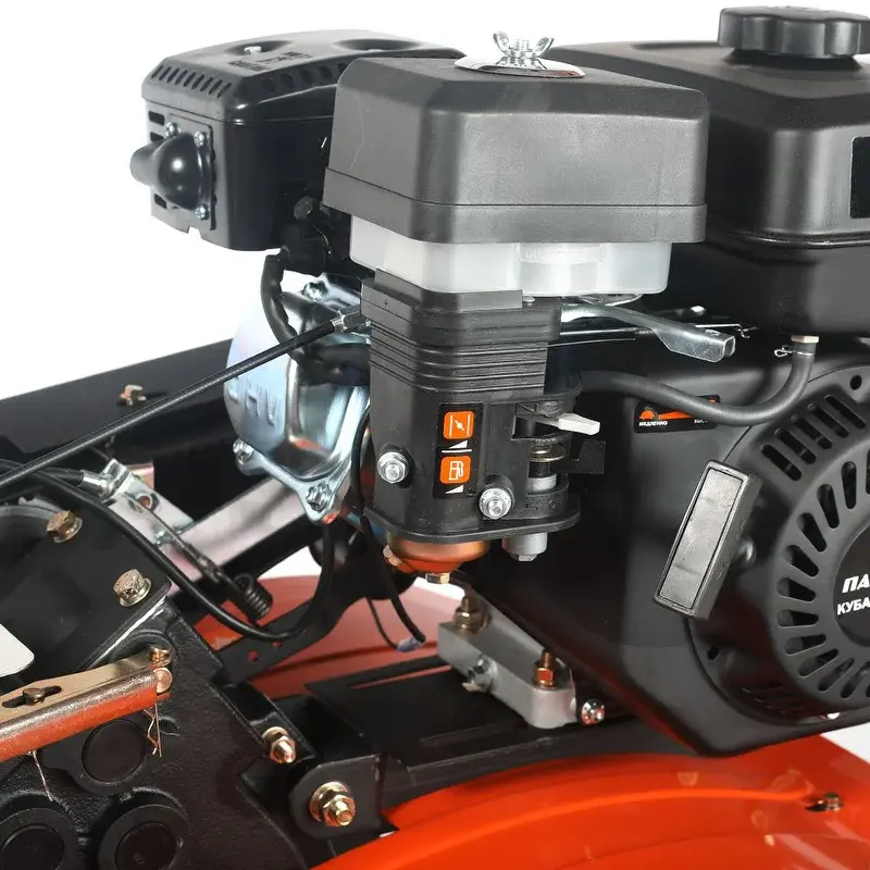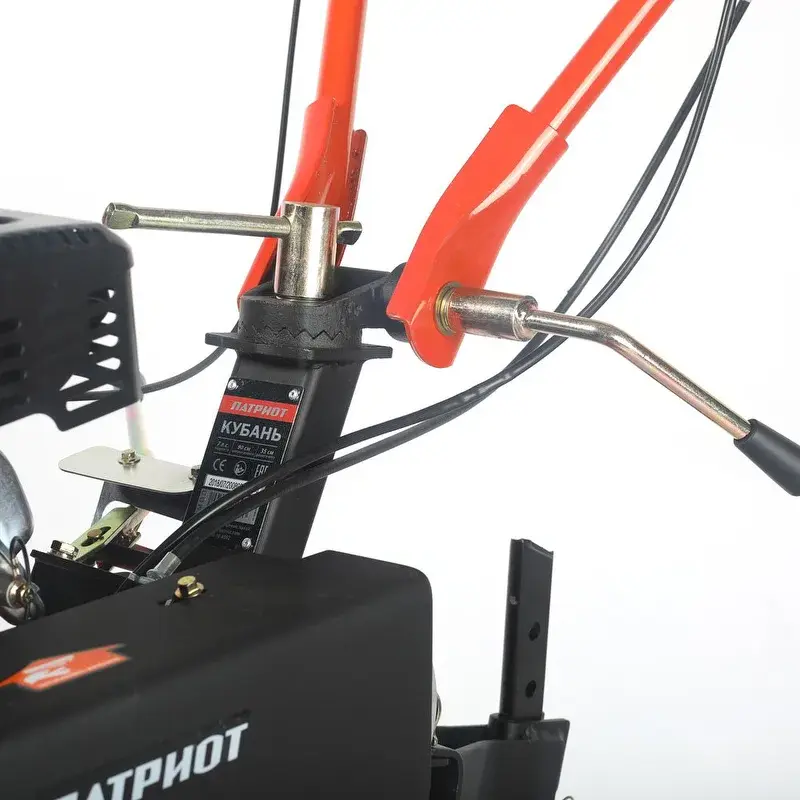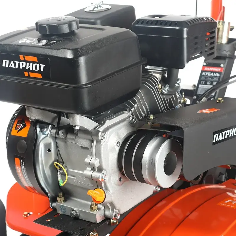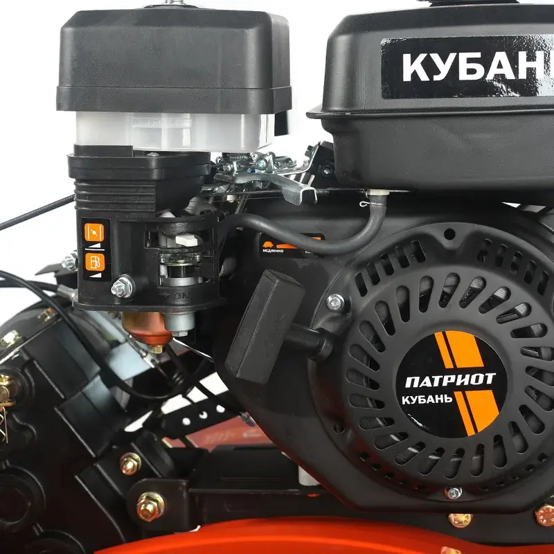 Мотокультиватор бензиновый ПАТРИОТ КУБАНЬ (поворотный руль чугунный редуктор) Мощность двигателя: 7,0 л.с.; Ширина захвата: 90 cм; Коробка передач:3 вперед / 1 назад; Редуктор: цепной; Сцепление: ременное; Российский" прицепной узел для установки сцепки и телеги.