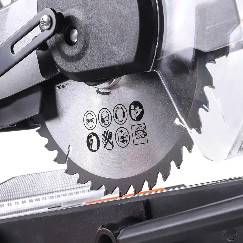 Благодаря функции плавного пуска двигатель постепенно набирает обороты без резких рывков. За счет возможности поворота рабочего стола и наклона пильного диска с помощью сетевой торцовочной пилы можно выполнять резы под углом в двух плоскостях. Шкалы с четкой градуировкой гарантируют высокую точность пропила. Механизм протяжки обеспечивает удобство работы с габаритными деталями. К отводному патрубку на корпусе можно подключить строительный пылесос или пылесборник для удаления пыли и стружек.