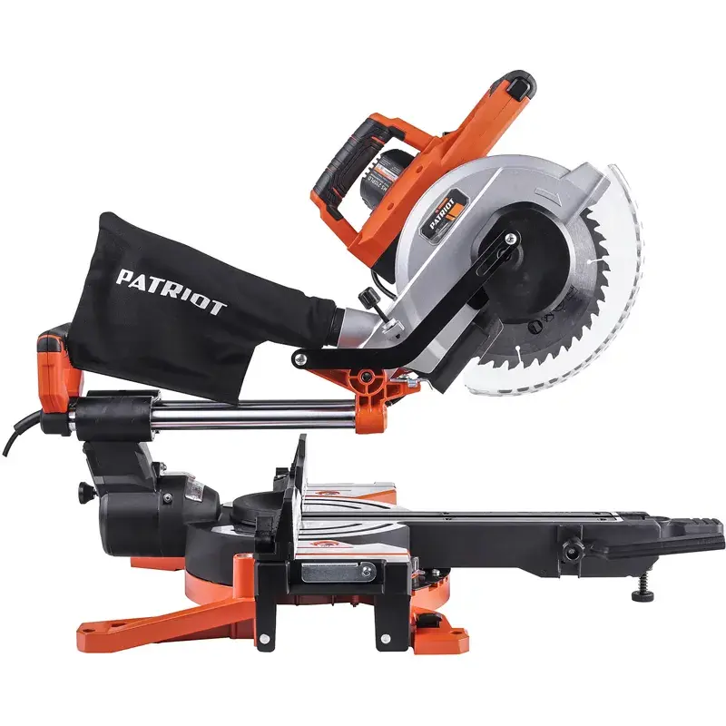 Торцовочная пила PATRIOT MS 210PLD — электроинструмент полупрофессионального класса, предназначенный для пиления заготовок из древесины, фанеры, ДСП, МДФ, ламината. При установке соответствующей оснастки позволяет резать тонкий алюминиевый профиль. Пила работает с пильными дисками диаметром 216 мм и подключается к сети с напряжением 220 В. Максимальная ширина пропила под прямым углом составляет 305 мм; под углом 45° — 215 мм. Устройство оснащено механизмом протяжки, лазерным указателем и двигателем с плавным пуском.