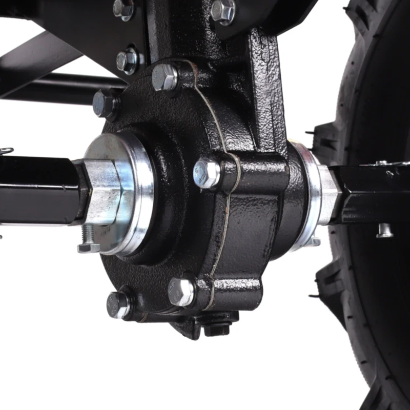 Мотоблок оснащен тремя передачами вперед и одной назад. Универсальный прицепной узел и вал отбора мощности (ВОМ) позволяют использовать разнообразное навесное оборудование. Чугунный шестеренчатый редуктор и система воздушного охлаждения с маслонаполняемым фильтром обеспечивают надежность и защиту от пыли и песка.