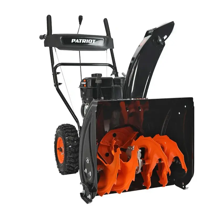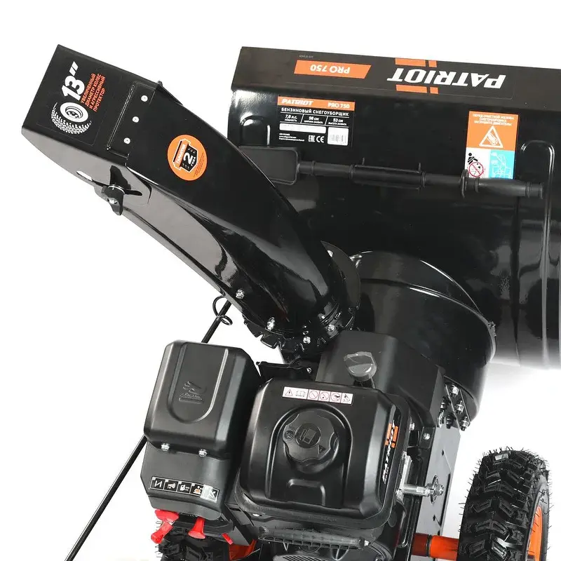 Бензиновый снегоуборщик Patriot PRO 750 предназначен для обработки сугробов глубиной до 53 см. Мотор заводится с помощью механического стартера. Для легкого и удобного перемещения машины предусмотрено 8 скоростей: 6 вперед и 2 назад.