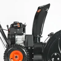 На выходе желоба установлен подпружиненный ограничитель, который не пропускает куски льда или камней, попавшие во время уборки в ковш. Топливный бак вмещает до 3,6 л бензина. Его крышка обнесена пластиком, благодаря чему она не примерзнет к рукам или перчаткам даже при сильных морозах.