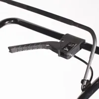 На ковше находятся направляющие лыжи. Их положение регулируется вручную. Если они установлены высоко, то ковш сможет захватить слой снега вплотную к земле. А нижнее расположение предотвращает столкновение ковша с поверхностью под сугробами, что понадобится, если вы хотите уберечь декоративную дорожку от повреждений.