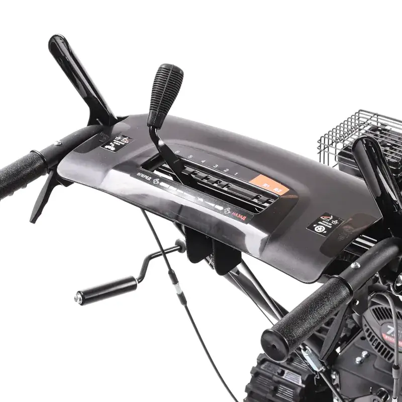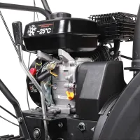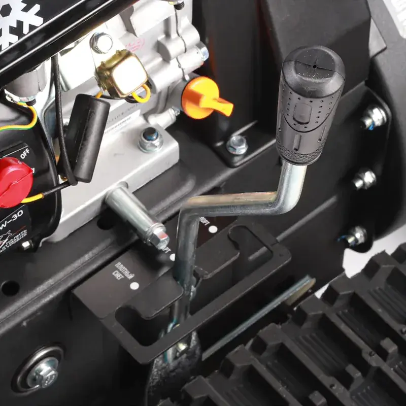 Все элементы управления бензиновым снегоуборщиком расположены на отдельной панели для быстрого доступа. Вы можете запускать двигатель, регулировать скорость передвижения, настраивать дальность выброса снега. С управлением разберется даже новичок.