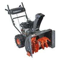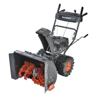 Бензиновый снегоуборщик PATRIOT имеет многоступенчатую коробку передач, которая позволяет выбрать необходимый темп движения в зависимости от высоты снежного покрова. На пониженной передаче легче убирать тяжелый мокрый снег. Расчистка территории от свежевыпавших осадков не займет много времени, если самоходная снегоуборочная машина будет двигаться с максимальной скоростью. Для повышения эффективности уборки угол поворота желоба и дальность выброса можно регулировать.