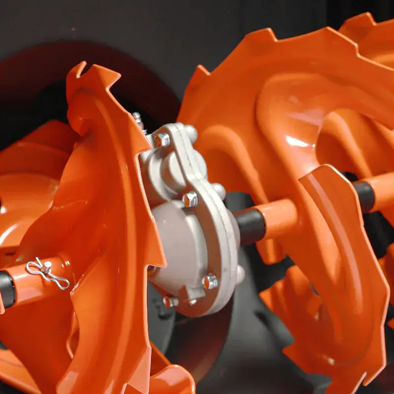 Во избежание преждевременного износа конструкции кожуха высоту подрезного ножа над землей можно регулировать. Настройка выполняется с помощью лап, расположенных с каждой стороны ковша. На неровных проселочных дорогах рекомендуется установить нижнее или среднее положение, на гладком и ровном покрытии — верхнее. Лапы имеют по две рабочие поверхности. Когда одна изнашивается, деталь можно перевернуть на 180 градусов.