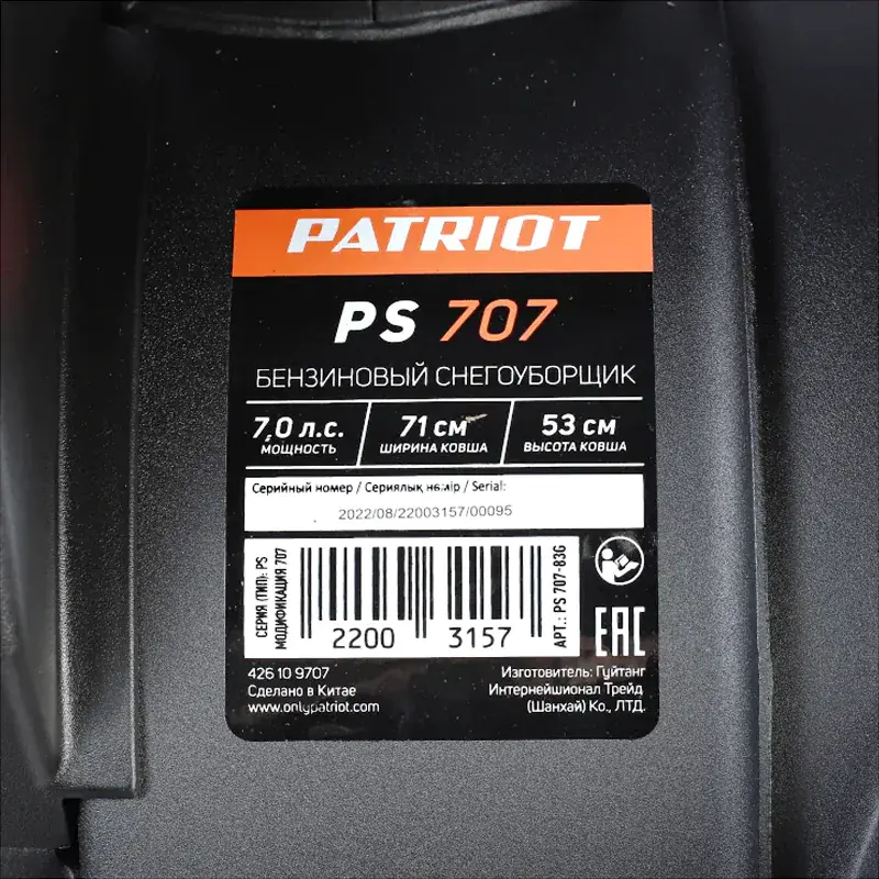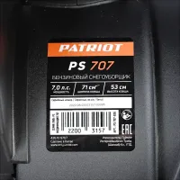 Бензиновый снегоуборщик PATRIOT PS 707 полупрофессионального класса предназначен для удаления снежных завалов на пешеходной и проезжей части, очистки тротуаров, дорог и загородных участков от плотных снежных масс. Четырехтактный двигатель мощностью 7 л.с. с ручным стартером и праймером рассчитан на эксплуатацию в суровых зимних условиях. Одной заправки топливного бака объемом 3,6 л хватает на продолжительную работу. Ширина обработки составляет 71 см.