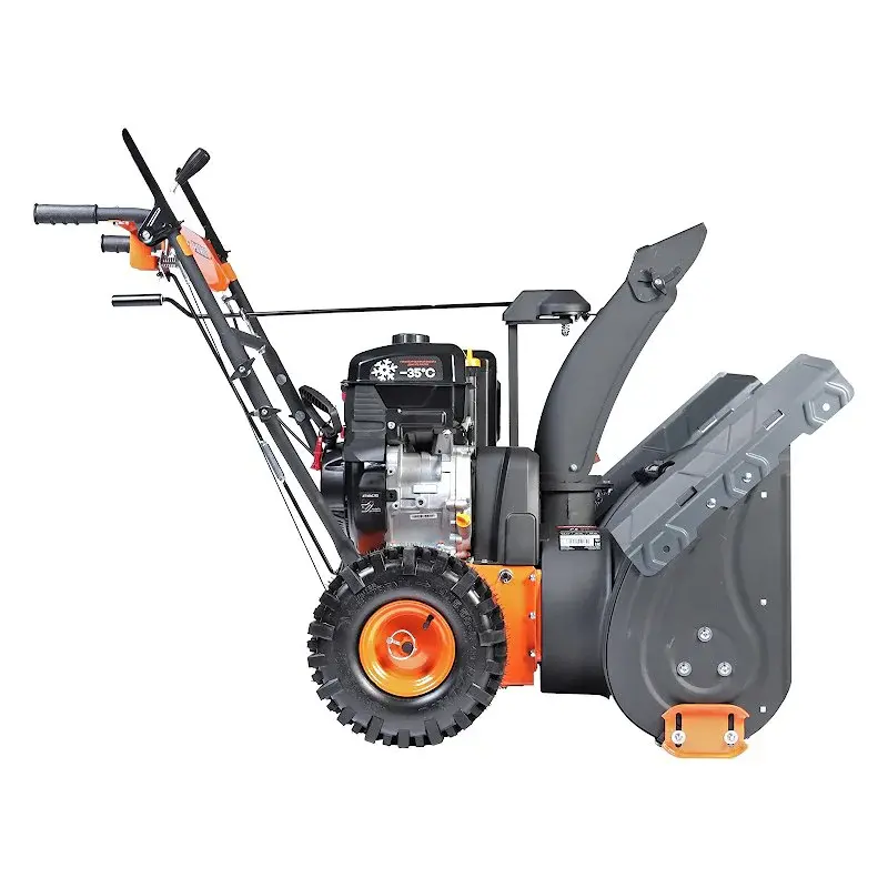 Большой ковш позволяет захватывать сугробы высотой до 53 см. Это поможет сохранить ухоженный вид участка даже после обильного снегопада.