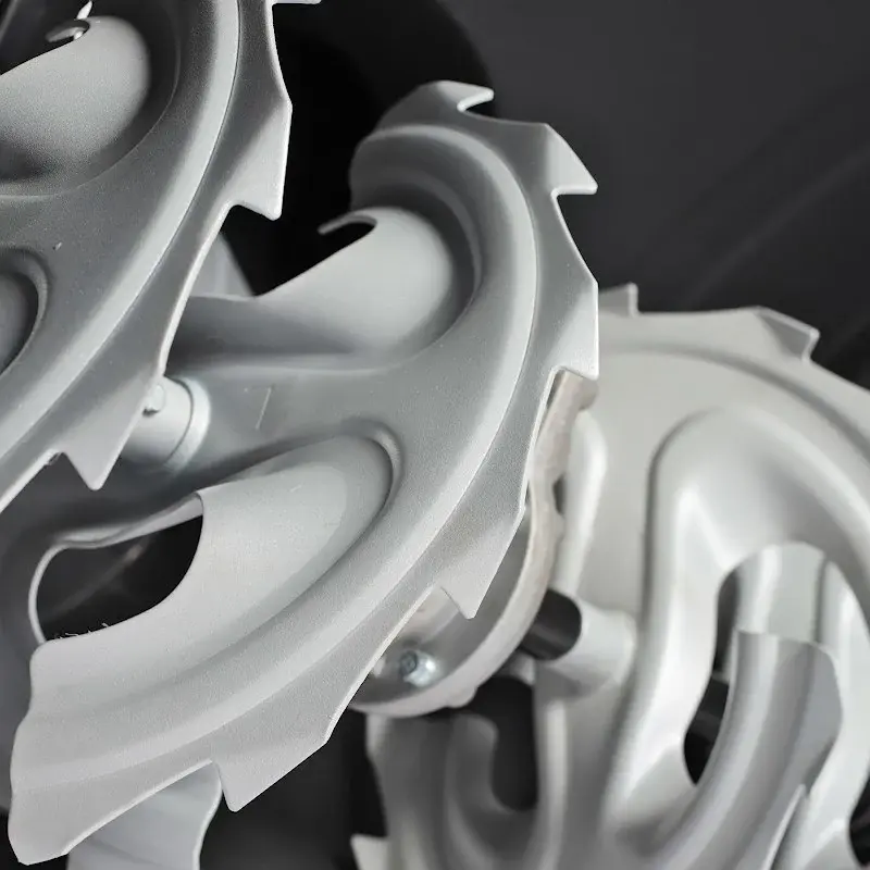 Шнек выполнен из стали для максимальной прочности конструкции. Заостренные зубья без труда размалывают даже плотные комки снега.