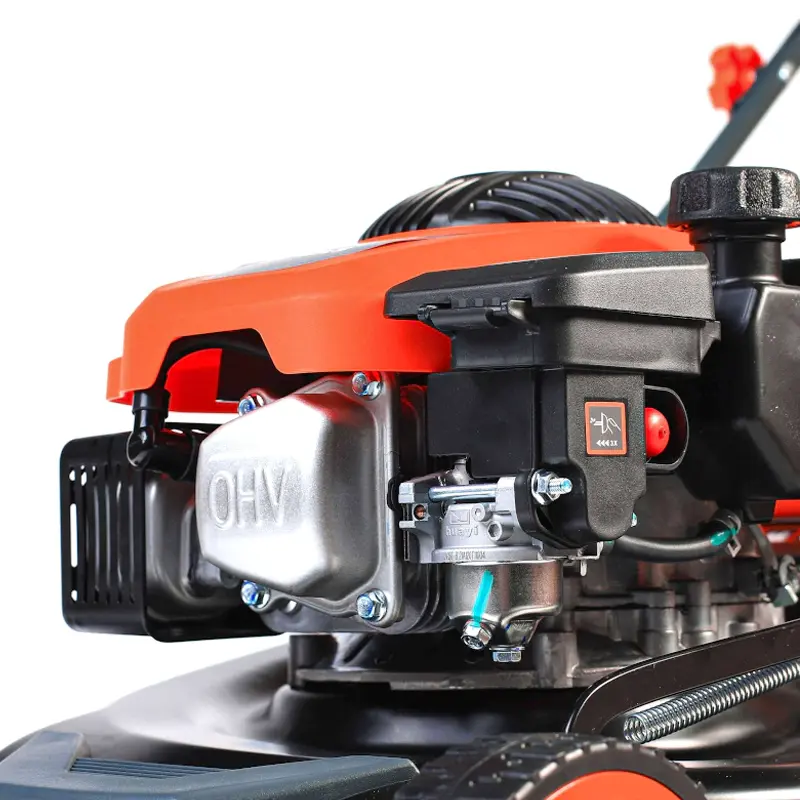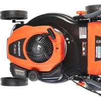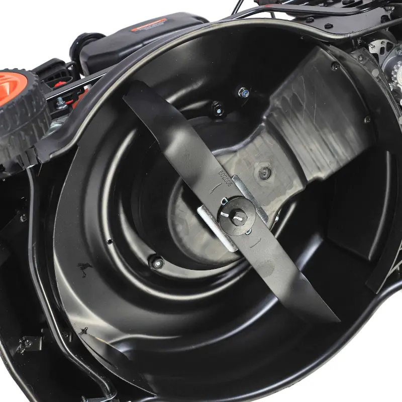 На корпусе есть 7-режимный рычаг, изменяющий высоту режущих лезвий. Регуляция уровня деки позволит убирать нужное вам количество травы, в зависимости от типа рельефа местности или цели вашей работы.