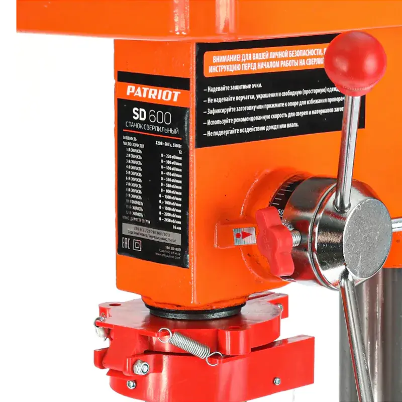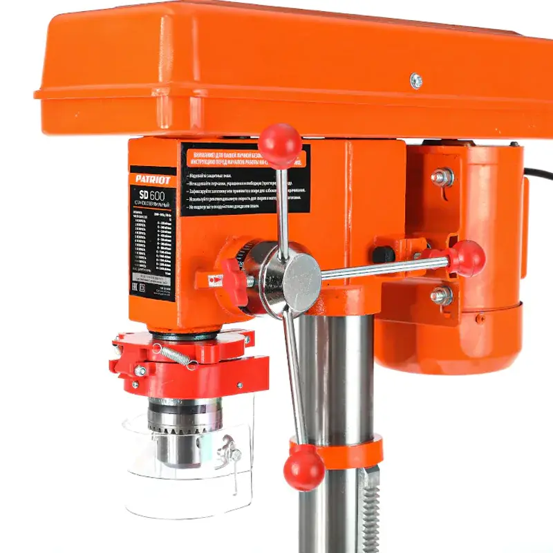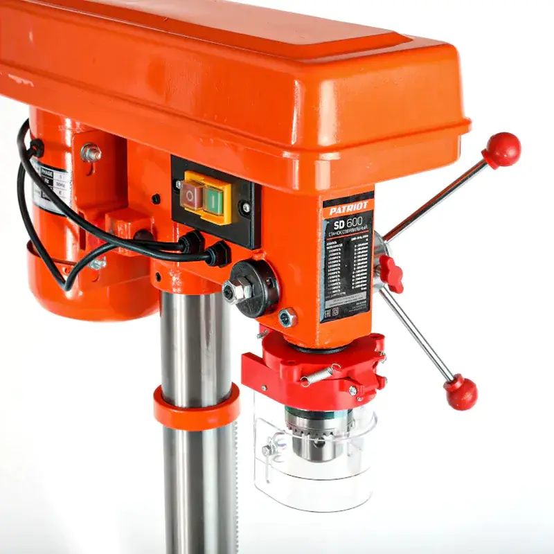 Сверлильный станок PATRIOT SD 600 используется для получения отверстий в заготовках из дерева или металла. Высота рабочего стола регулируется, для удобства проведения операций с деталями разных габаритов. Пазы в основании дают возможность устанавливать зажимные приспособления для обработки заготовок с большой толщиной. Тройная рукоятка с удобными наконечниками обеспечивает плавность подачи сверла.