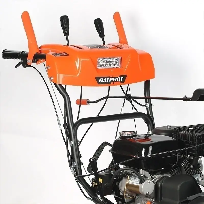 Бензиновый снегоуборщик Patriot Сибирь 85 ЕТ за один проход очищает дорожку шириной 71 см, что отлично подходит для участков максимальной площадью до 800 м2. Модель оснащена гусеничным приводом для простого перемещения по неровностям и ямам. Есть подогрев рукояток и светодиодный фонарь.