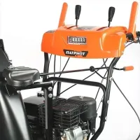 Двигатель самоходного снегоуборщика Patriot Сибирь 85 ЕТ запускается двумя способами, от ручного стартера или электрозапуска. В первом случае понадобится вытягивать тросик, прикладывая усилия. Но такой способ позволит запустить даже холодный двигатель. При использовании электростартера на включение модели у вас уйдет не более 3 с.