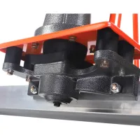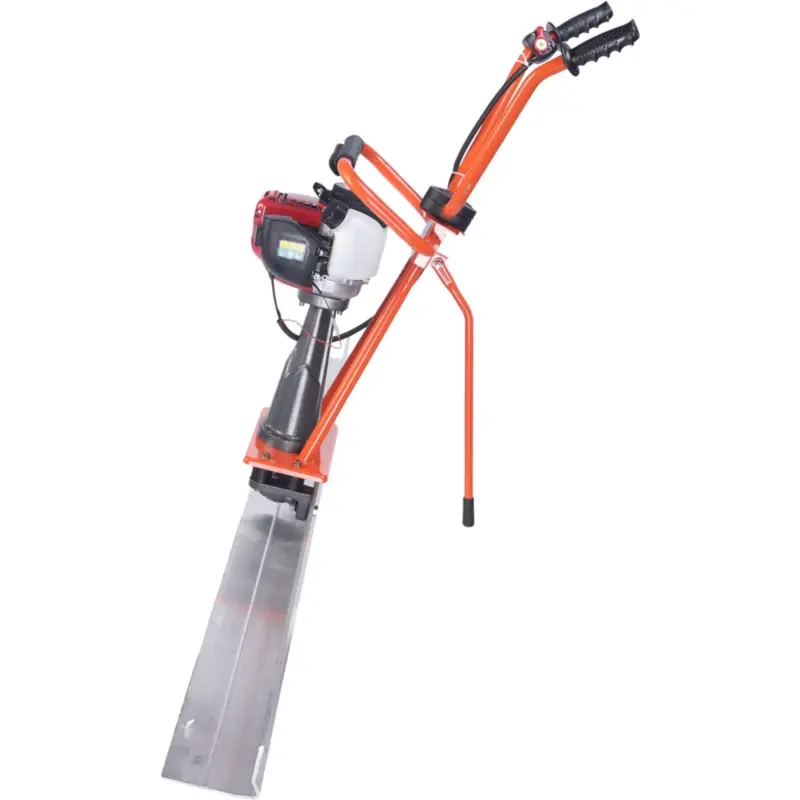 Профиль из легкого алюминиевого сплава оптимальной гладкой формы обеспечивает гладкое скольжение по бетону. Корпус из прочного чугуна устойчив к коррозии. Регулируемые по высоте прорезиненные рукоятки для простого управления устройством. Складная подножка надежно закрепляет устройство, не давая ему сдвинуться с места. Ручка с тканевой вставкой для удобства переноски.